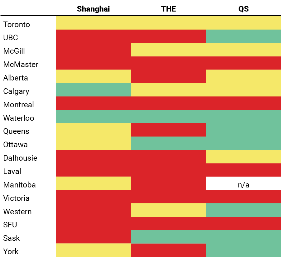Some of theses rankings are incorrect and should corrected. For example Toronto is 25 in the Latest Shanghai and uOttawa is 187 in THE 2026.