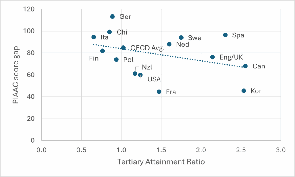 Figure 7: Tertiary Attainment vs. PIAAC Score Gap, 25-34 year-olds